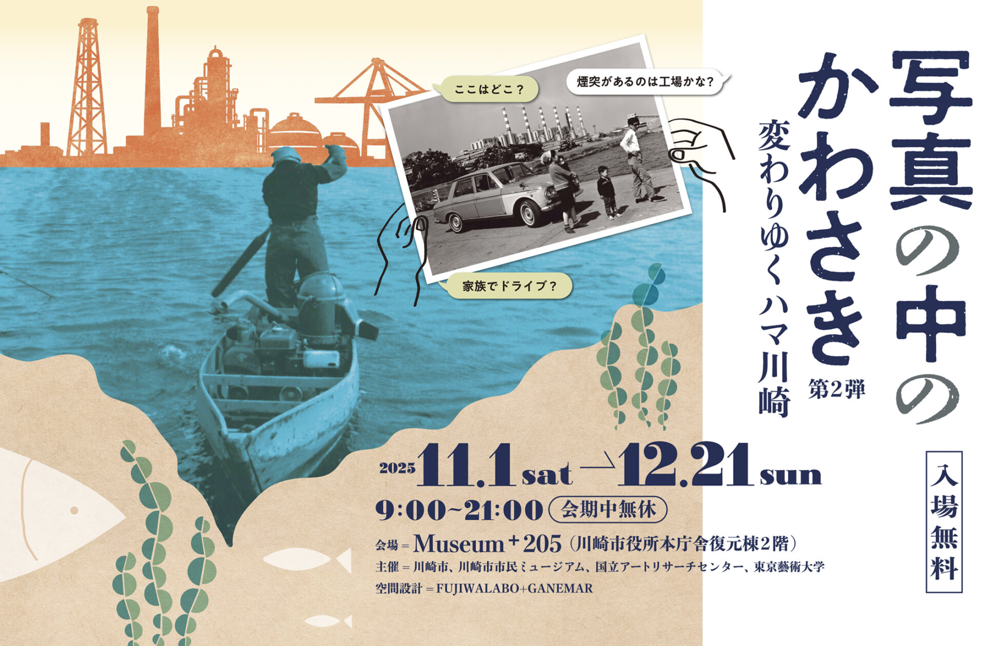写真の中のかわさき第2弾変わりゆくハマ川崎、入場無料、2025.11.1sat-12.21sun、9:00-11:00会期中無休、会場:Museum +205(川崎市役所本庁舎分館2階) 、主催:川崎市、川崎市市民ミュージアム、国立アートリサーチセンター、東京藝術大学 、会場構成:FUJIWALABO+GANEMAR