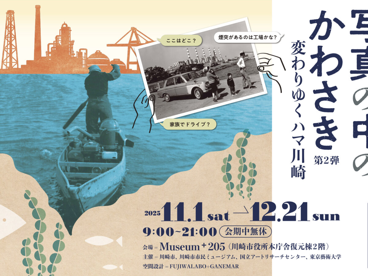 写真の中のかわさき第2弾変わりゆくハマ川崎、入場無料、2025.11.1sat-12.21sun、9:00-11:00会期中無休、会場:Museum +205(川崎市役所本庁舎分館2階) 、主催:川崎市、川崎市市民ミュージアム、国立アートリサーチセンター、東京藝術大学 、会場構成:FUJIWALABO+GANEMAR