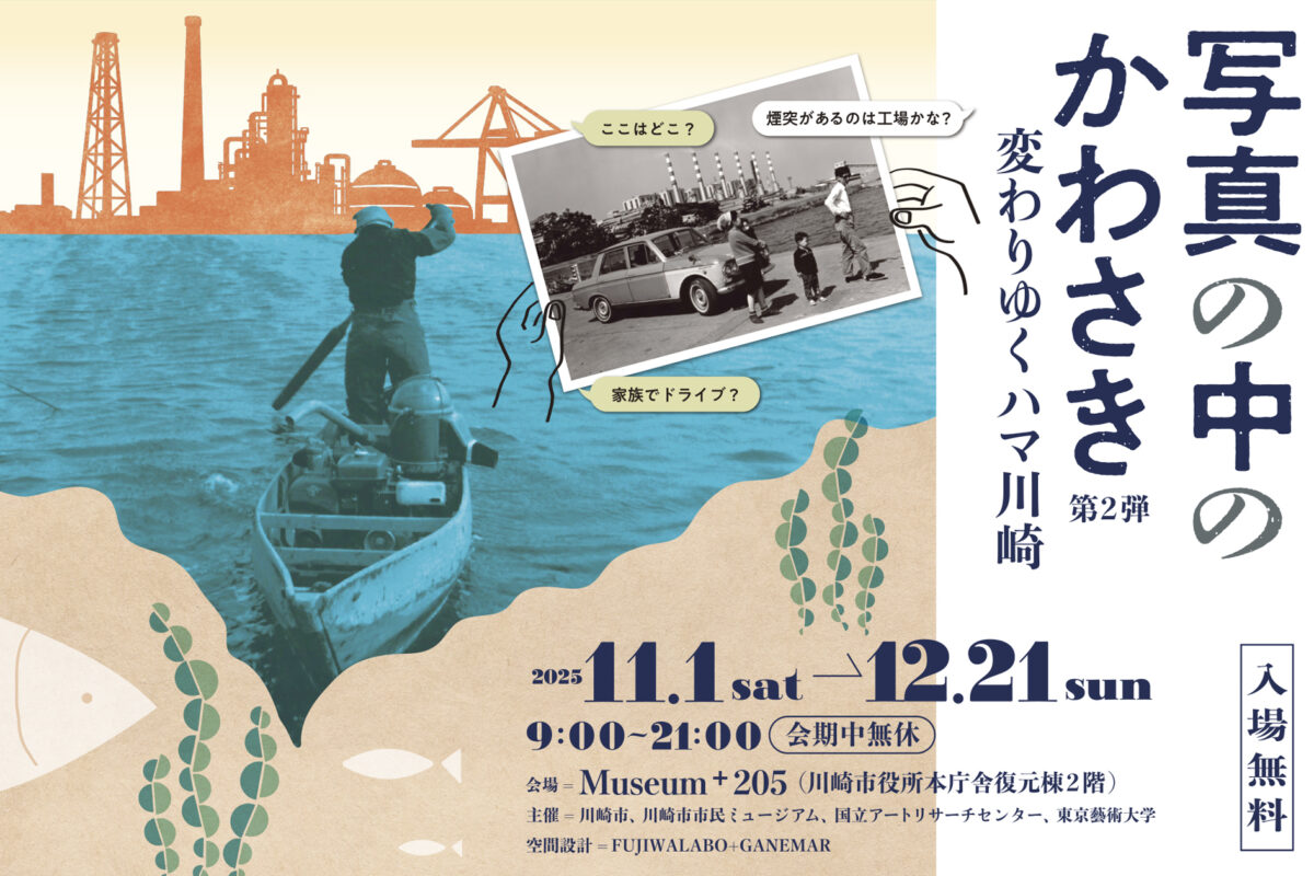 写真の中のかわさき第2弾変わりゆくハマ川崎、入場無料、2025.11.1sat-12.21sun、9:00-11:00会期中無休、会場:Museum +205(川崎市役所本庁舎分館2階) 、主催:川崎市、川崎市市民ミュージアム、国立アートリサーチセンター、東京藝術大学 、会場構成:FUJIWALABO+GANEMAR